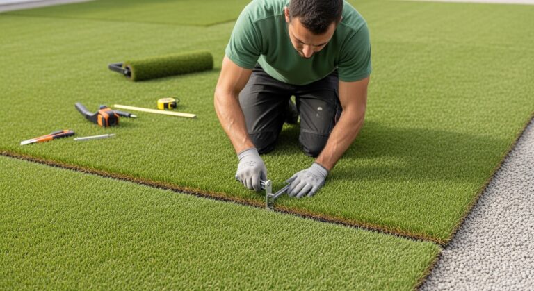 High-quality turf is cut, fitted, and secured for a seamless look.